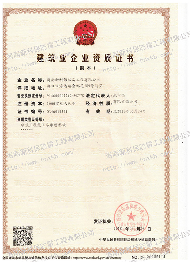 海南新科保防雷工程有限公司是一家集防雷技術(shù)研究、防雷檢測、防雷工程設(shè)計施工、安防監(jiān)控工程設(shè)計施工、建筑智能化施工、建筑水電施工于一體的高科技公司。在相關(guān)主管部門監(jiān)管下,致力于為客戶提供專業(yè)的安全防護(hù)、建筑智能化、水電技術(shù)等優(yōu)質(zhì)產(chǎn)品和工程服務(wù)。